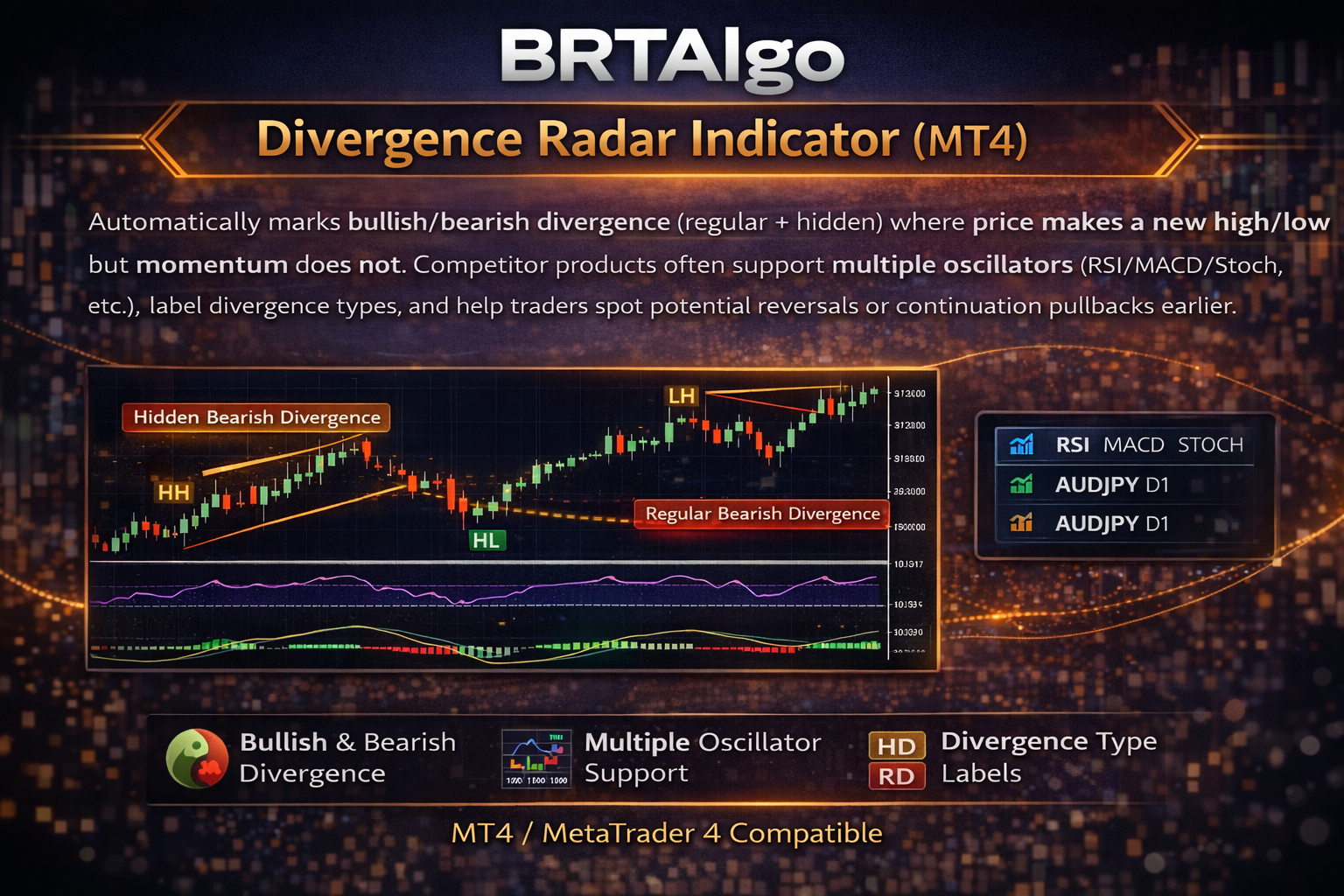 BRTAlgo Divergence Radar Indicator (MT4)
