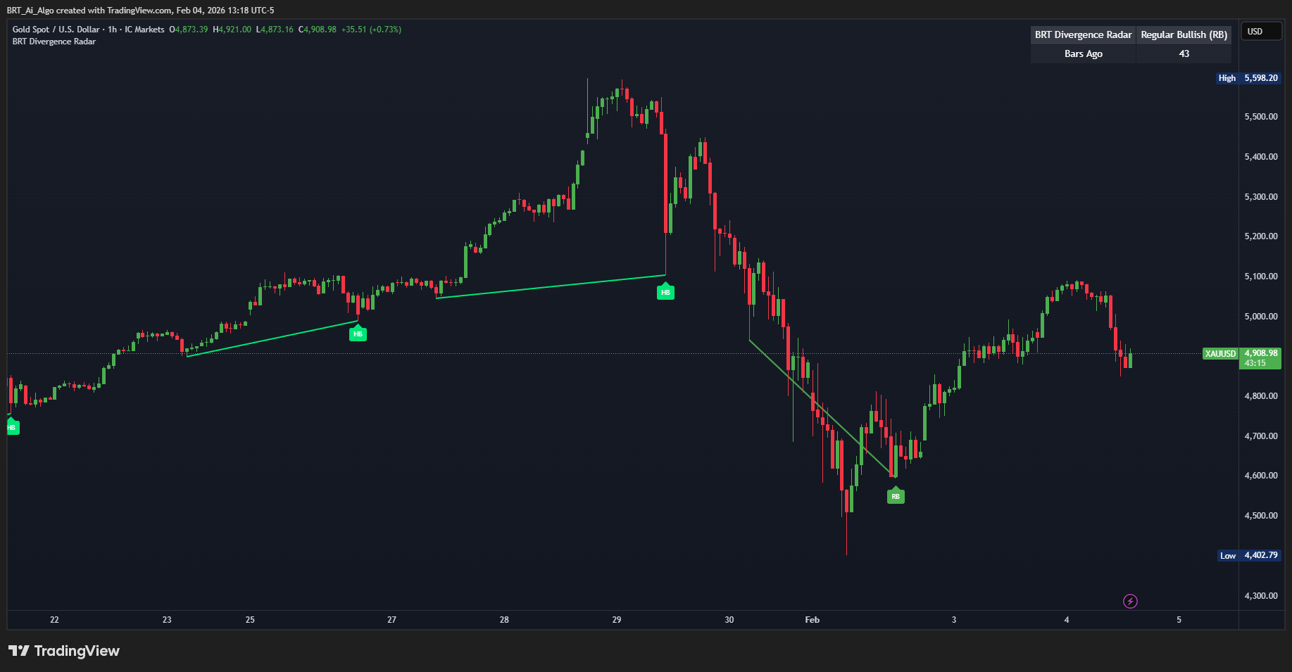 Spots regular and hidden divergences between price and momentum. Offers sensitivity controls, pivot logic, and alerts for new divergence signals.