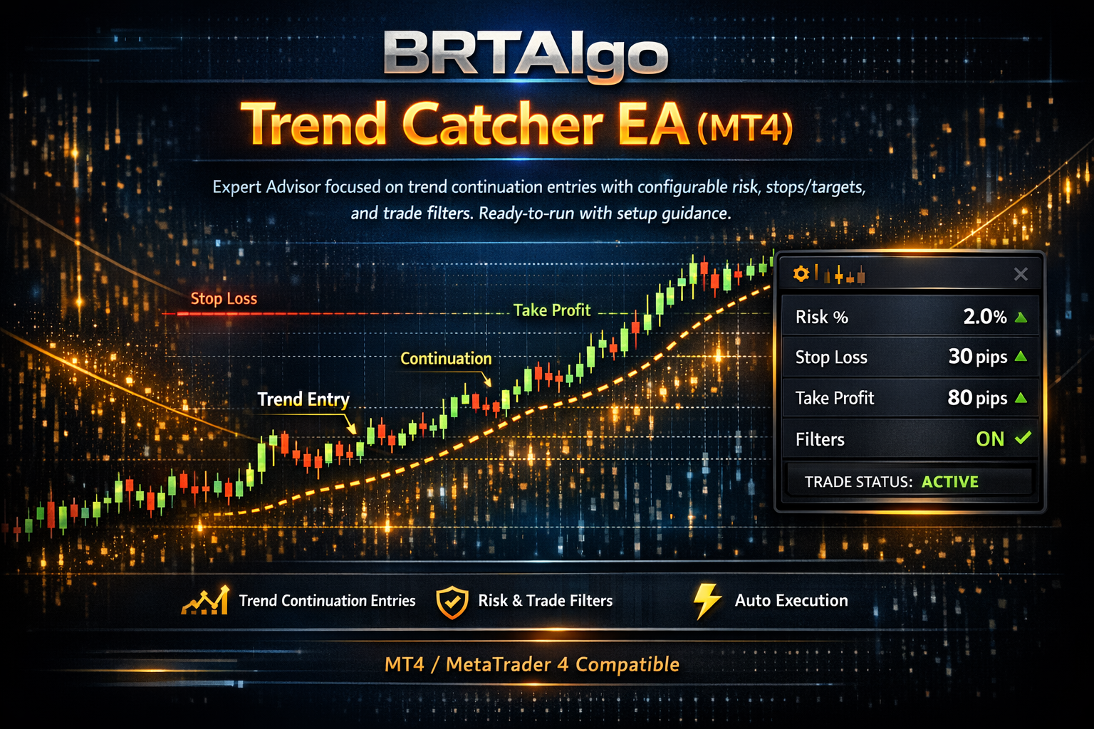 Expert Advisor for MT4 focused on trend continuation entries with configurable risk, stops/targets, and trade filters. Delivered ready-to-run with setup guidance.