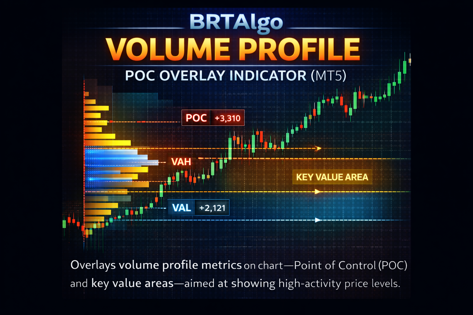 Overlays volume profile metrics on chart�Point of Control (POC) and key value areas�aimed at showing high-activity price levels.